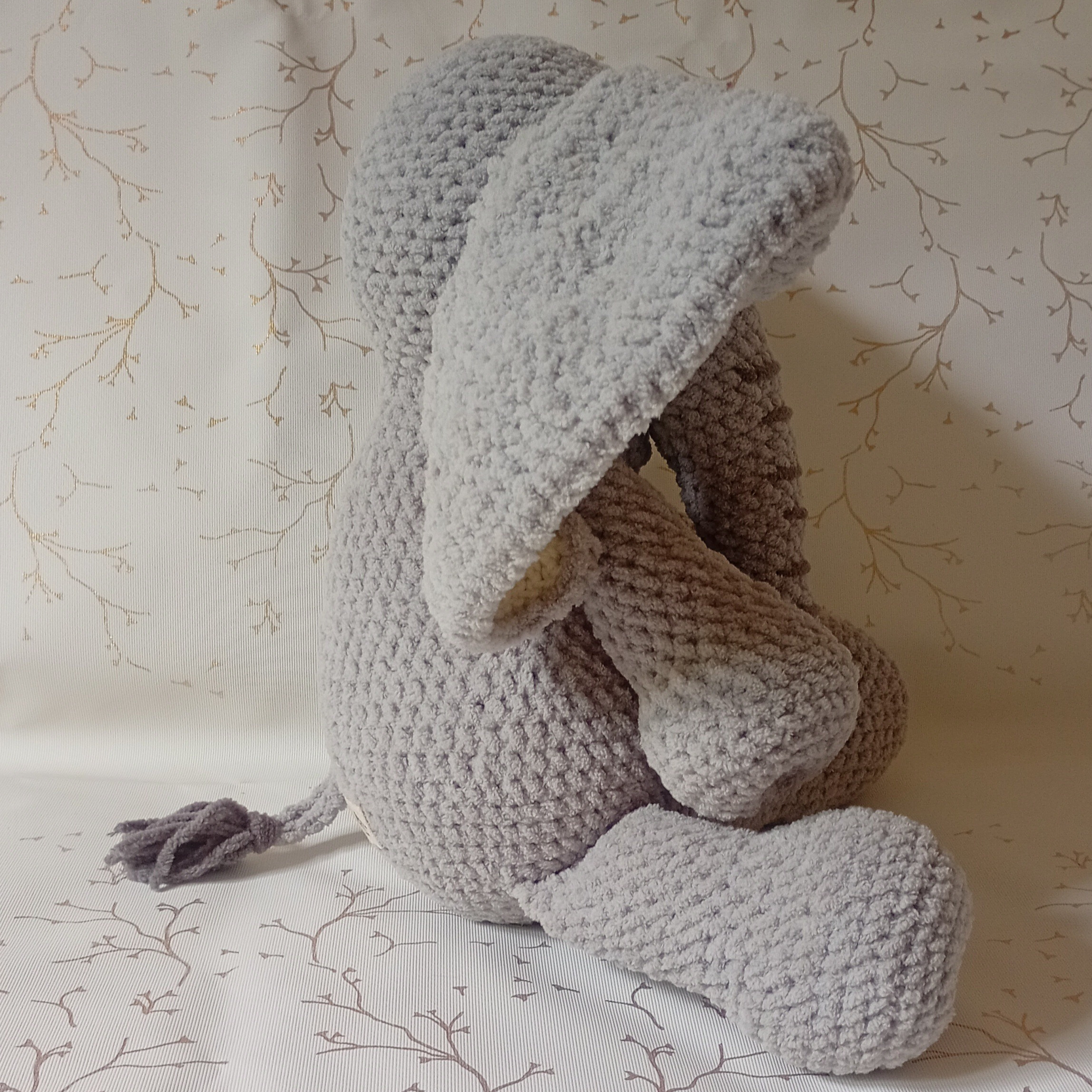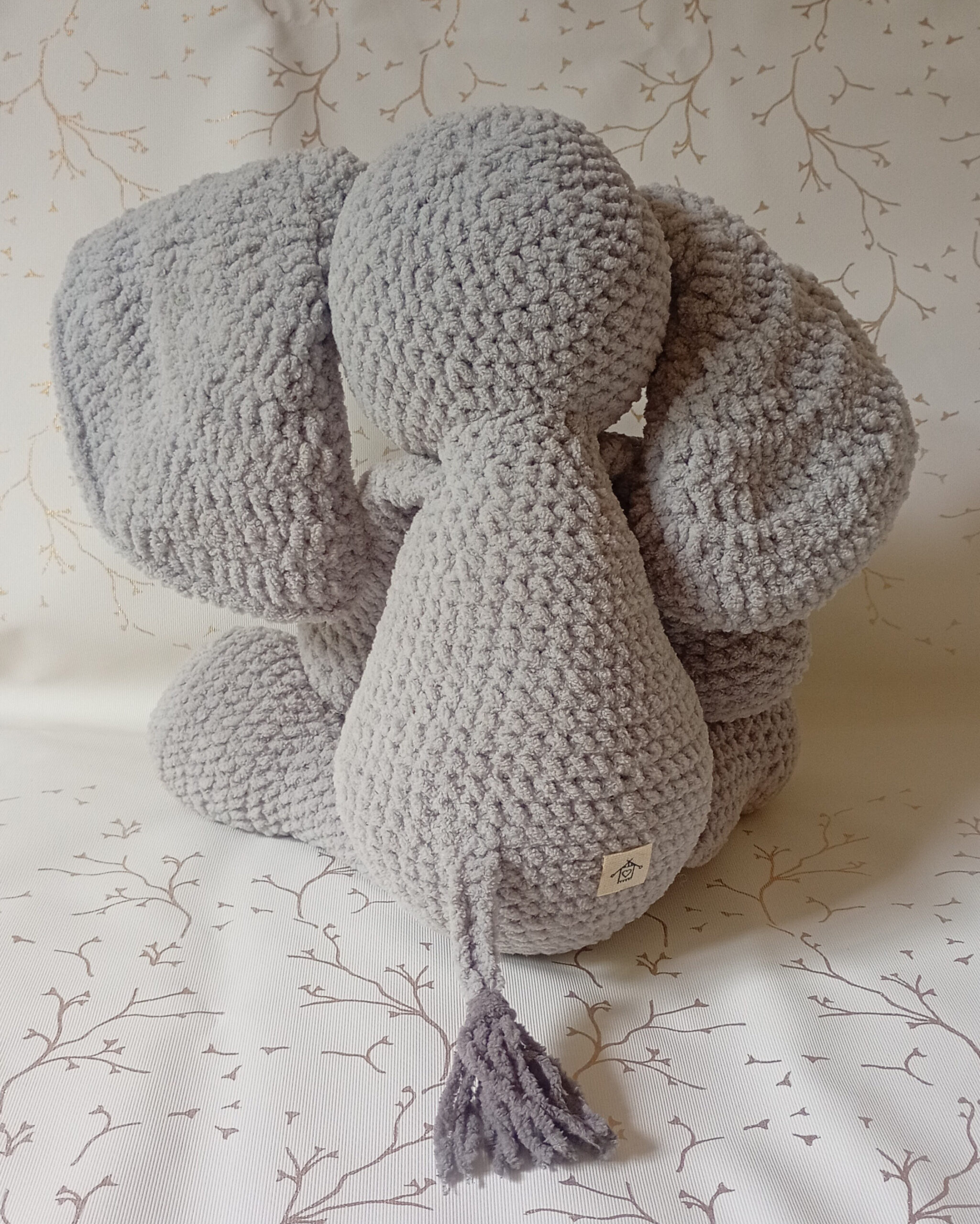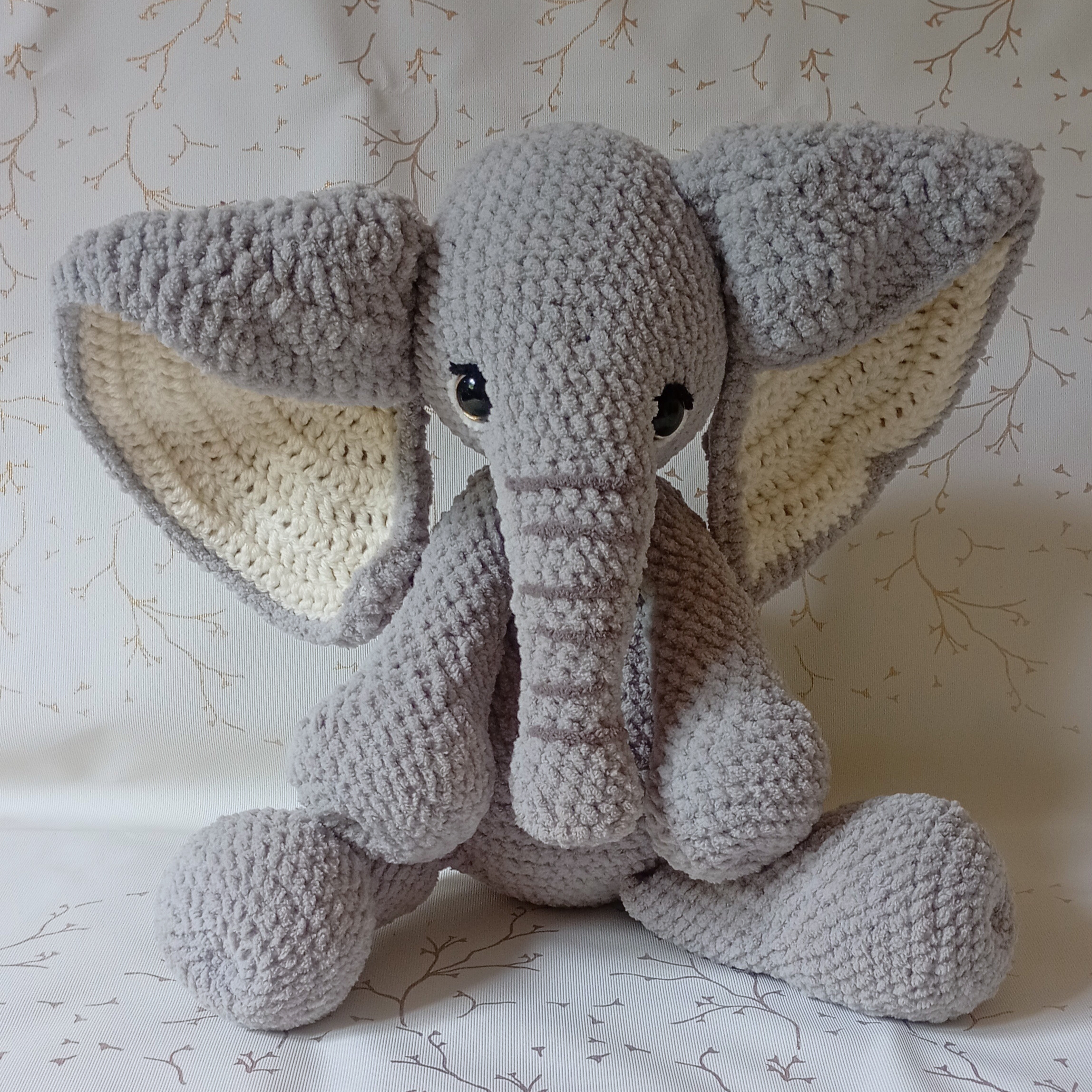 Este lindo elefante de amigurumi é um bichinho de pelúcia macio e resistente que qualquer criança adoraria abraçar e carregar por aí. Seu tamanho grande dá a sensação de estar abraçando alguém de verdade, e o material de lã macia o torna ainda melhor.